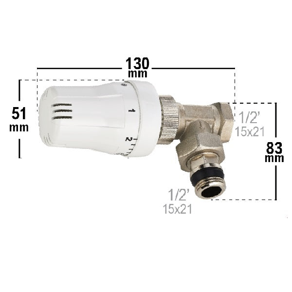 Válvula termostática para radiador de calefacción - Escuadra 1/2 está agotado y se enviará tan pronto como vuelva a estar disponible.