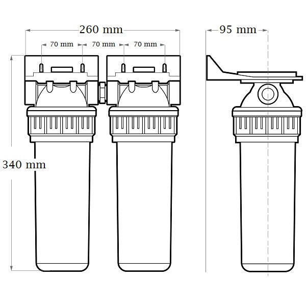 Estación que permite filtrar impurezas con el cartucho bobinado, y el tratamiento de agua contra el cal con el cartucho de tratamiento con polifosfato