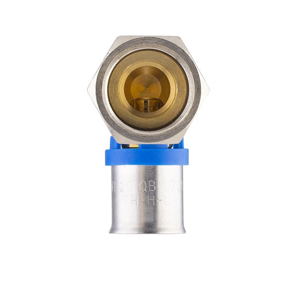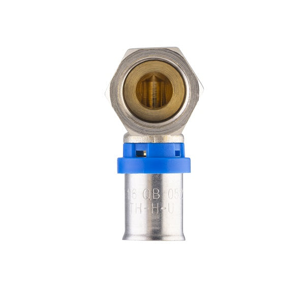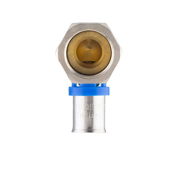 Conector para tubo multicapa, los conectores a prensar marca QUICK PLOMBERIE son multi perfil certificados, para ser conectados con una máquina prensadora o con una prensa multicapa manual con casquillos TH, H o U, el anillo en HDPE permite verificar el buen posicionamiento del tubo en el conector antes de realizar el prensado