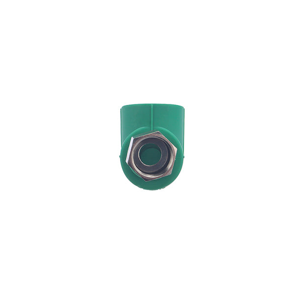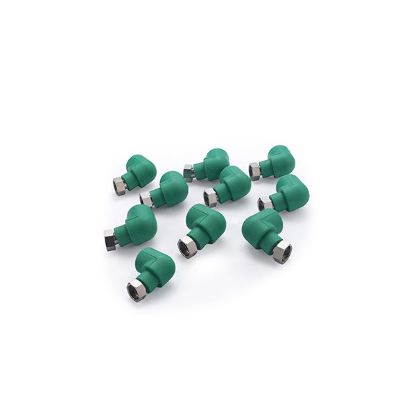 Codo hembra con tuerca libre en PPR ideal para fontanería, calefacción o sistema de riego.