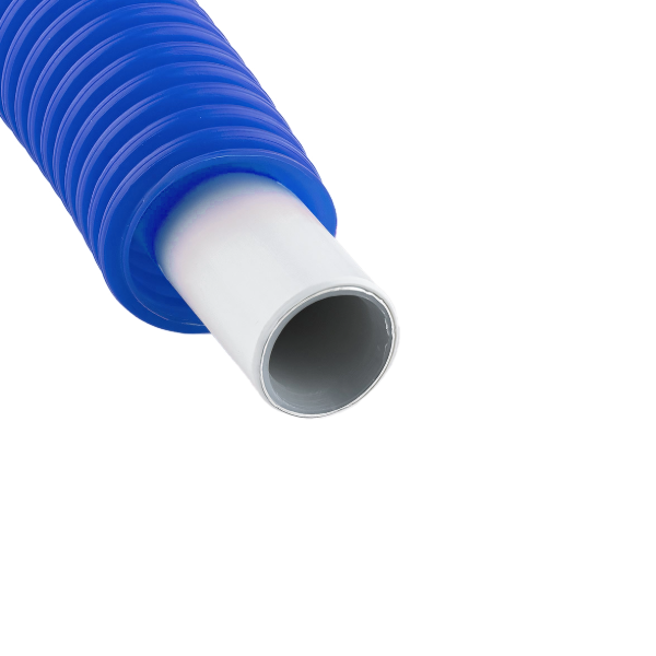 El corrugado permite encastrar el tubo, el color azul sirve de referencia para identificar el agua fría, es bastante posible pasar agua caliente a través del tubo