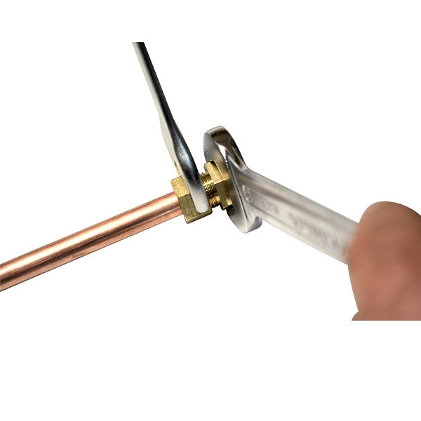 Mediante el apriete del anillo bicónico en el tubo de cobre