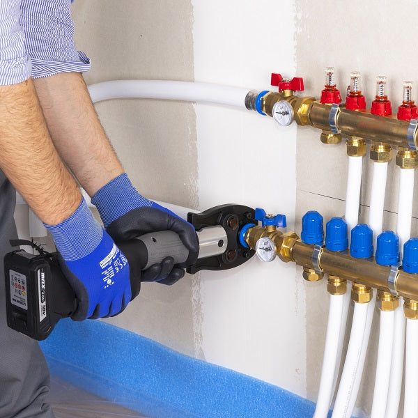 No permita que los trabajos de fontanería ralenticen su progreso. Elija nuestra prensa con batería para conexiones de cobre y multicapa, la herramienta imprescindible para instalaciones de calidad profesional. Ahorre tiempo, energía y disfrute de una eficiencia inigualable en todas sus obras.