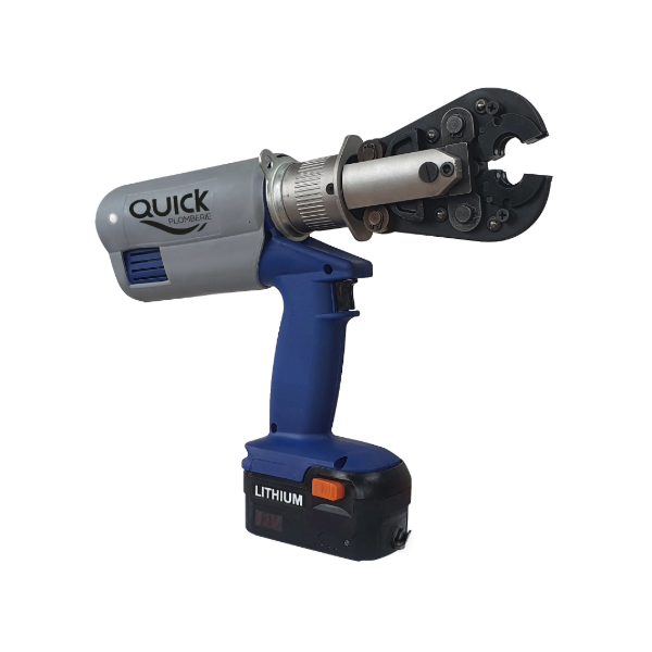 Esta prensa eléctrica de marca QUICK PLOMBERIE esta disenada para soportar un uso intensivo y regular. Un simple presión en el gatillo permite efectuar un prensado completo de un racor Multicapa en un tubo.