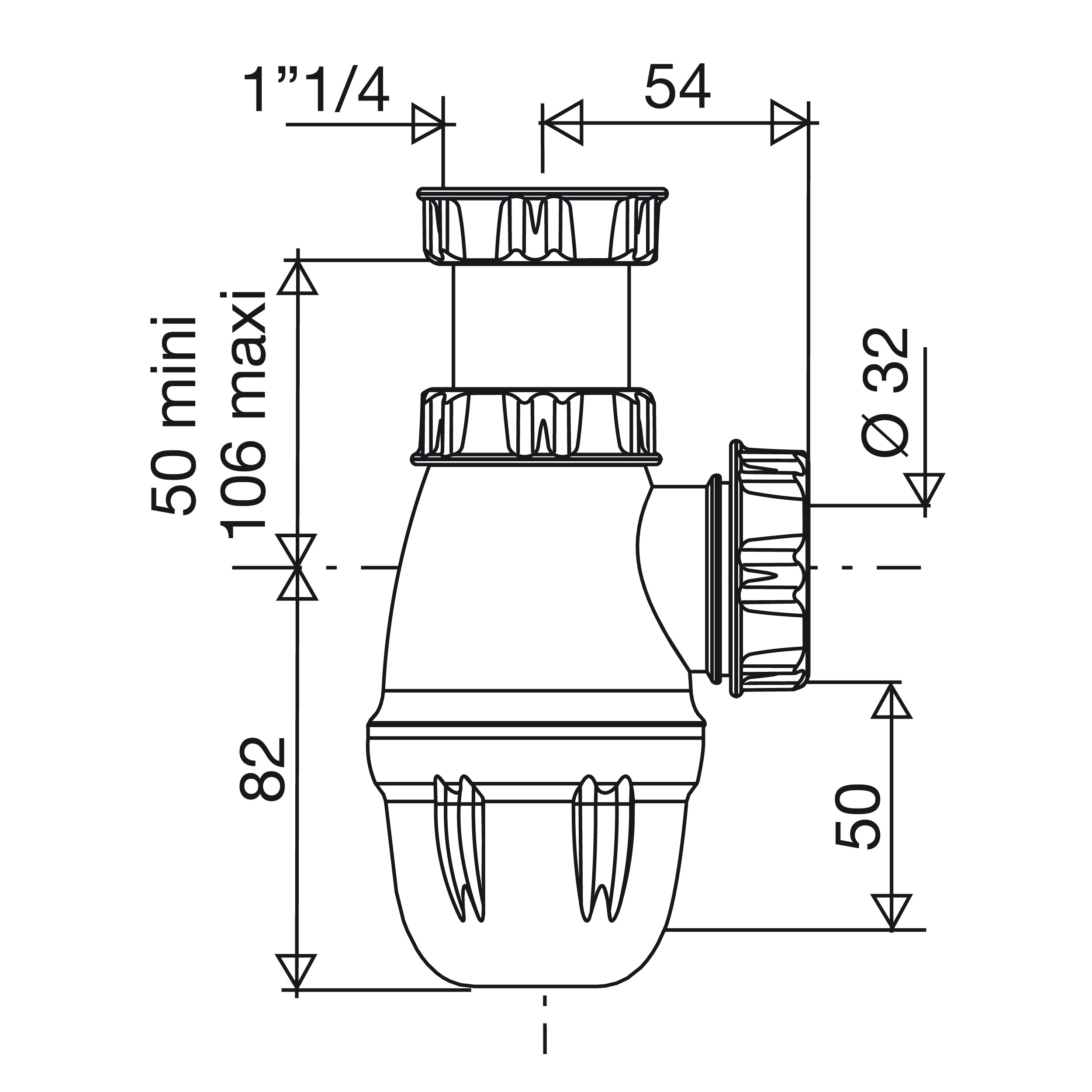 Se conecta al desagüe de 32 mm de diámetro mediante una tuerca + un anillo cónico