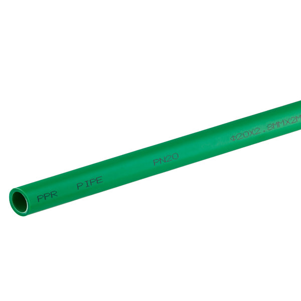 Tubo de 2 metros en PPR ideal para obras de fontanería, calefacción o sistema de riego.
