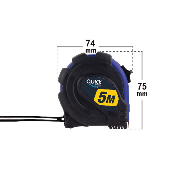 Diseñado para soportar el uso diario y las condiciones más exigentes en obra, este flexómetro 5 metros o flexómetro 10 metros cuenta con una carcasa bimaterial resistente a los golpes. Su recubrimiento exterior de goma antideslizante garantiza un agarre firme y cómodo, incluso con guantes o en ambientes húmedos.