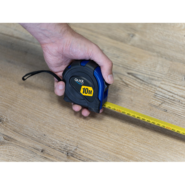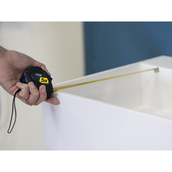 El flexómetro de 5 o 10 metros es una herramienta imprescindible para cualquier trabajo de medición, tanto en obra como en el taller o en casa. Gracias a su diseño compacto y ligero, la cinta métrica se transporta fácilmente en el bolsillo, en una caja de herramientas o sujeto al cinturón mediante su clip integrado. Su correa de muñeca aporta mayor comodidad durante el uso.