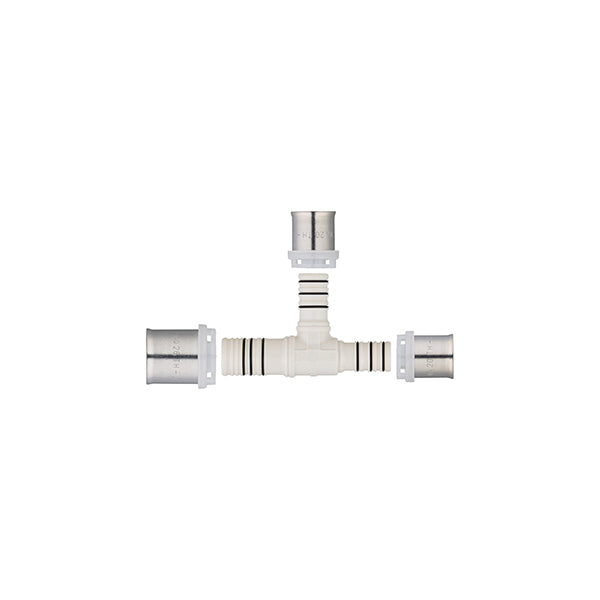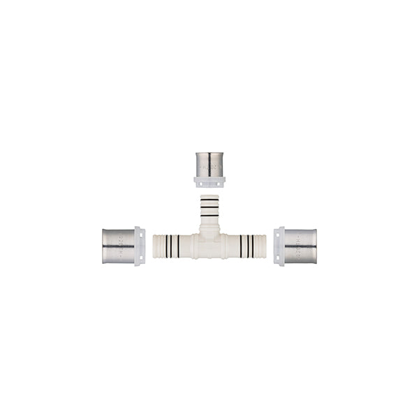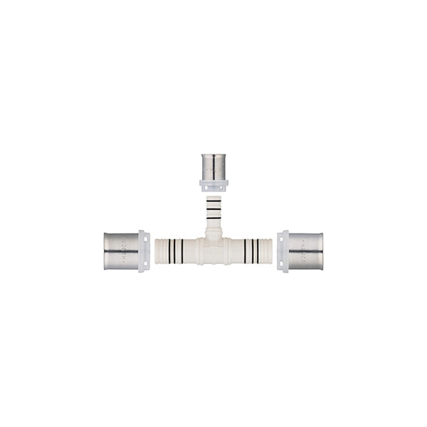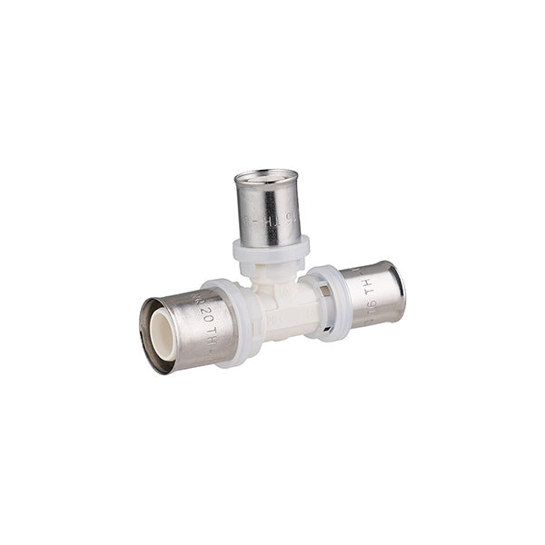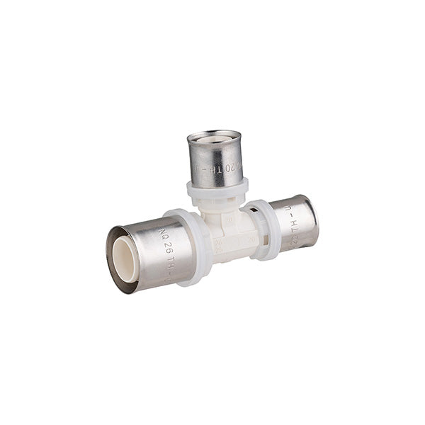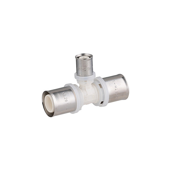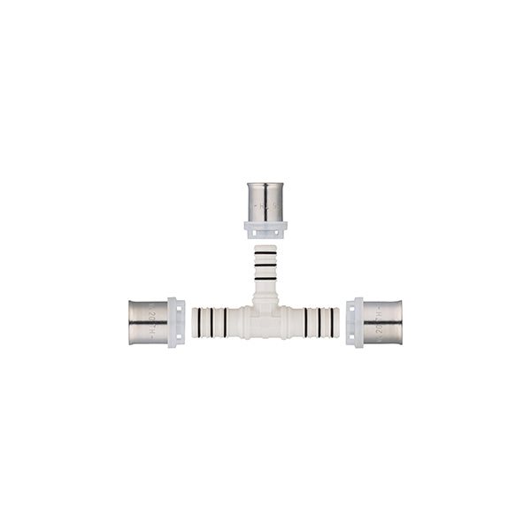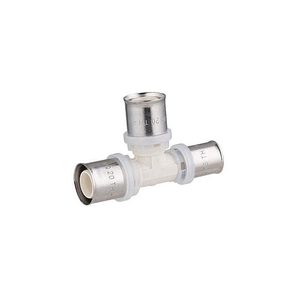 Para conectar dos tubos multicapa del mismo diámetro y un tercero con un diámetro menor que los otros dos, creando así una derivación en la instalación para alimentar un aparato adicional.