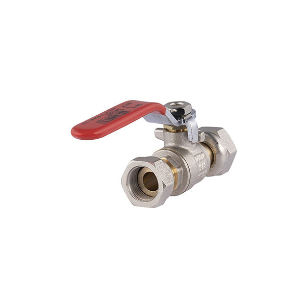 Válvula com alavanca esférica compatível com água potável para instalação hidráulica, permite isolar uma parte da instalação manobrando a alavanca